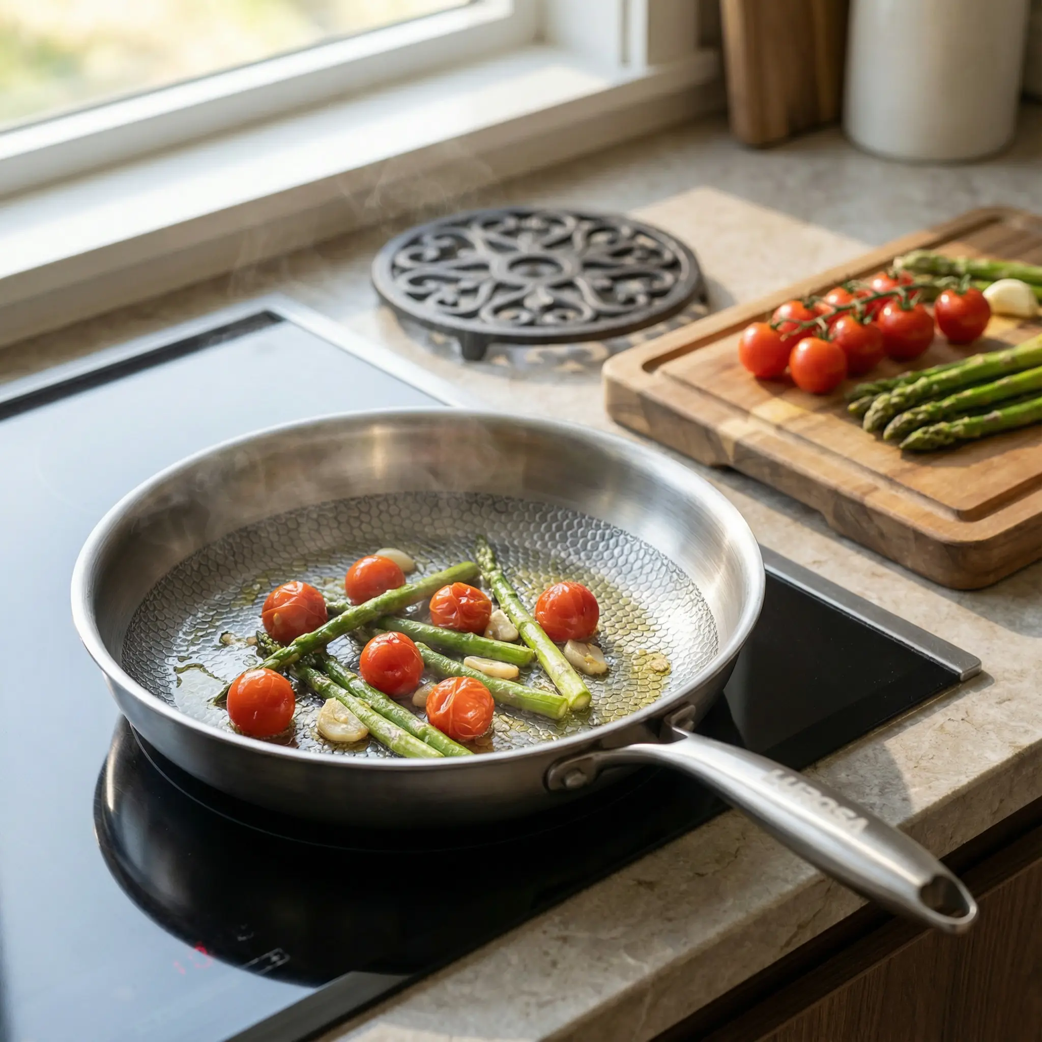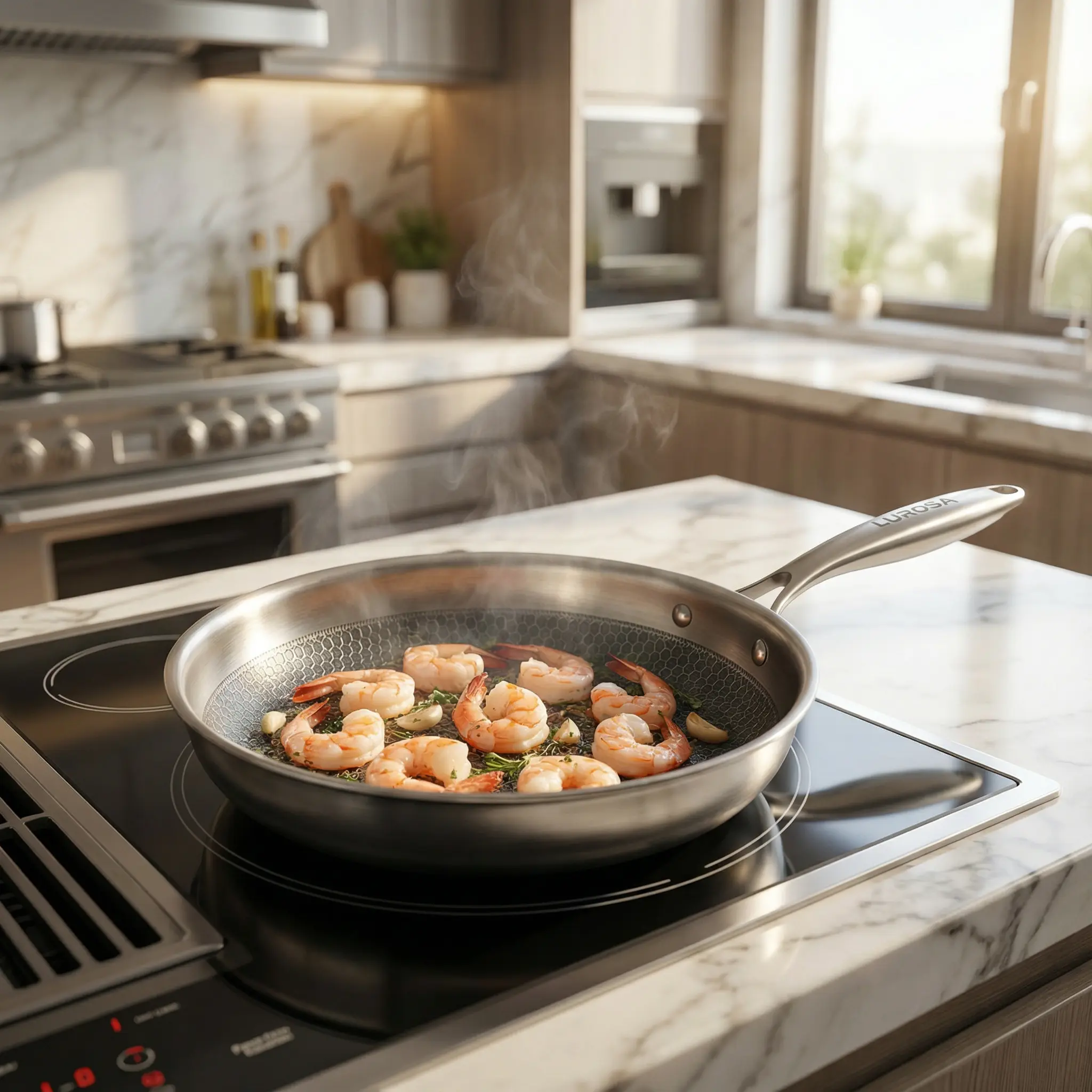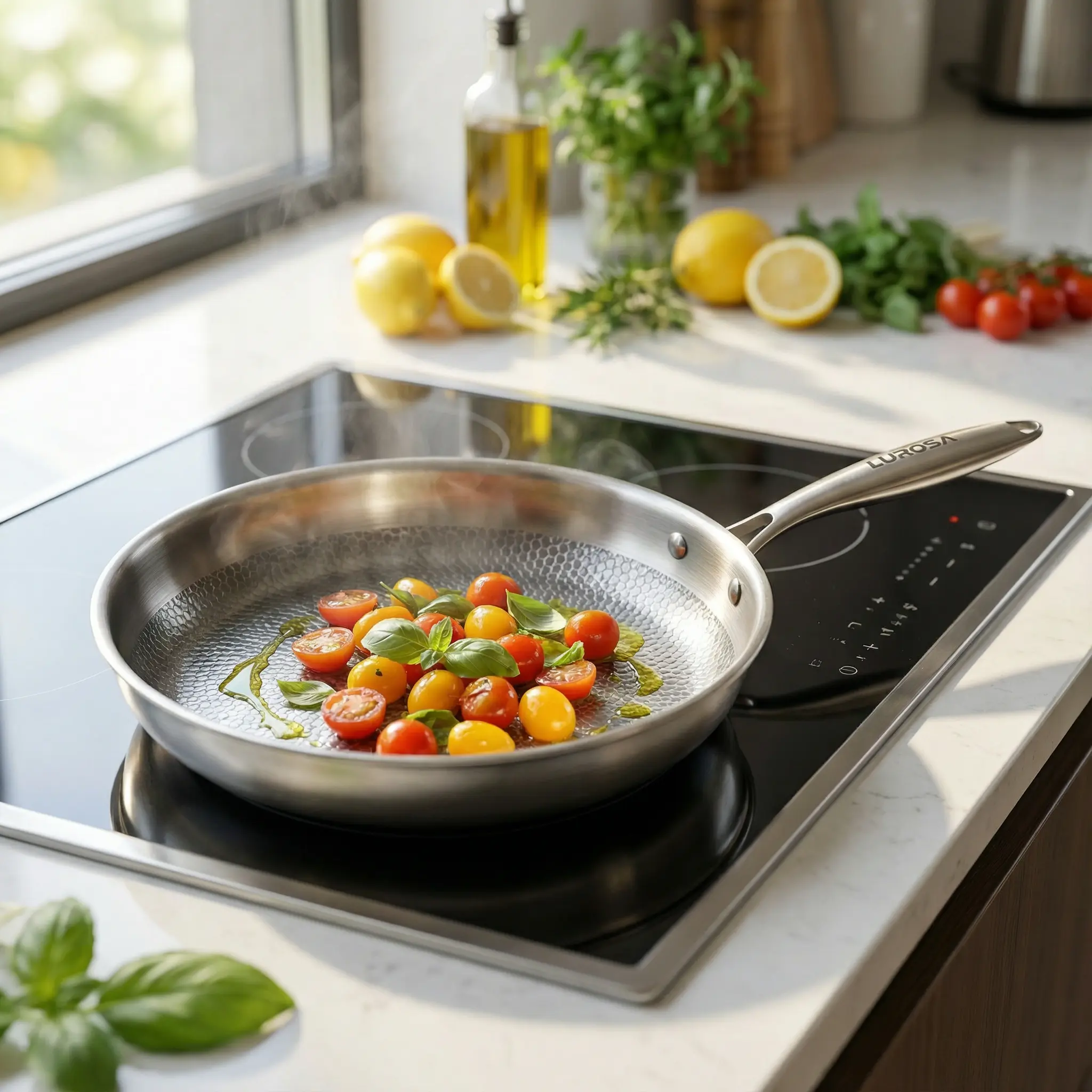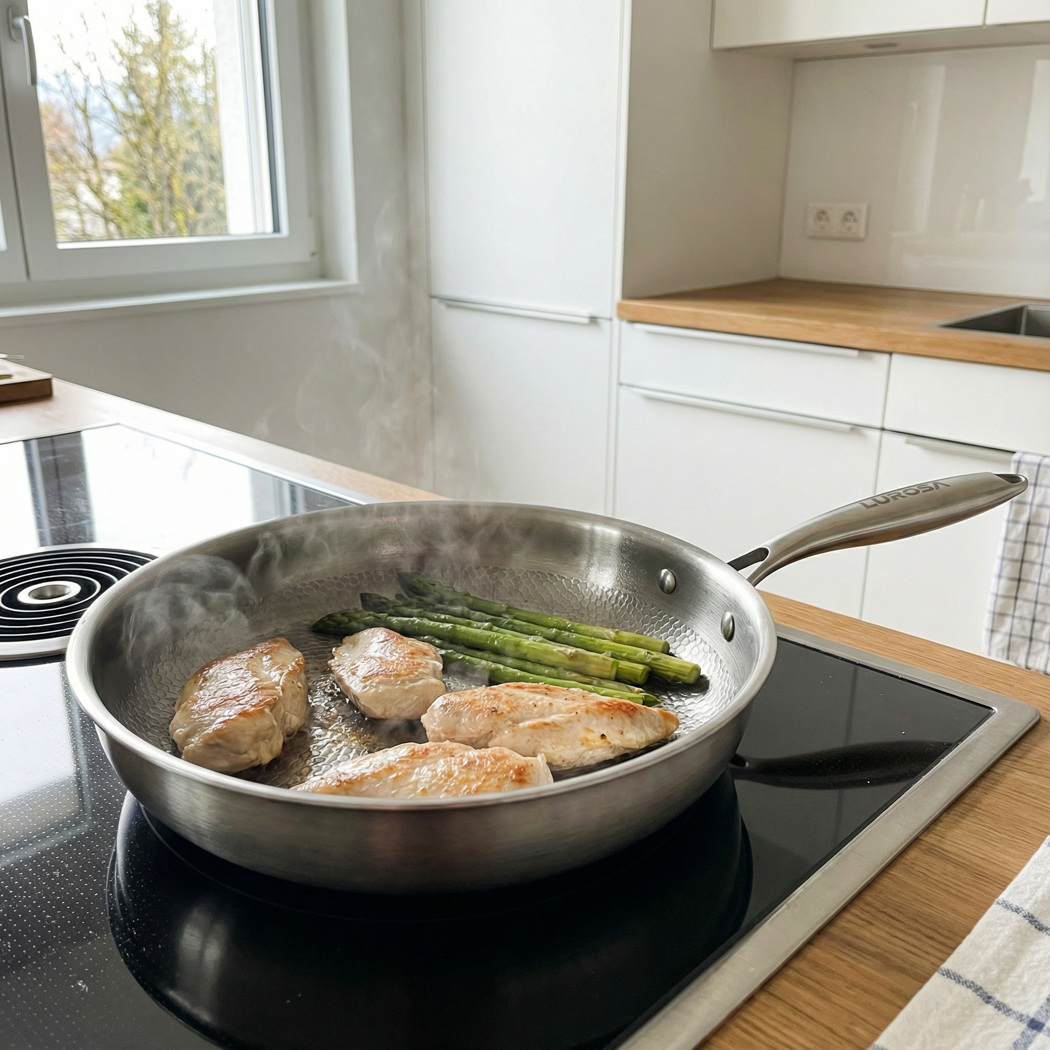 Erleben Sie müheloses Kochen mit der Lurosa-Pfanne aus 100 % Titan. Sie wurde für gleichmässige Wärmeverteilung und hohe Temperaturen ohne schädliche Beschichtungen entwickelt und hilft Ihnen dabei, mit weniger Öl, besserer Kontrolle und gleichbleibenden Ergebnissen zu kochen, jeden Tag.