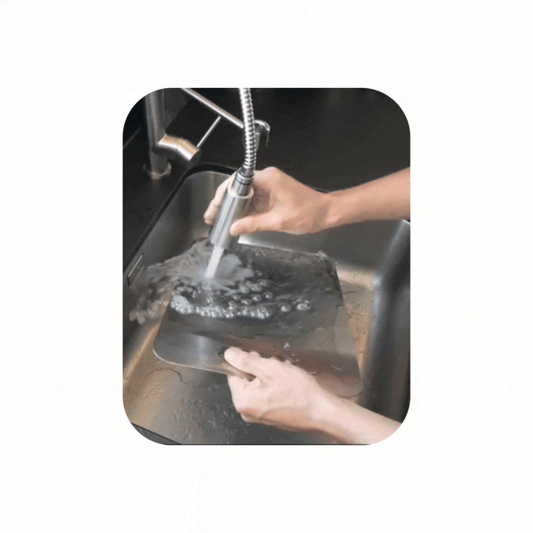 Egal ob Fleisch oder Früchte – nichts bleibt haften. Kurz abspülen, und es ist wieder einsatzbereit. Vermeide jedoch das Reinigen mit Stahlwolle, da diese deinem Brett schaden kann.