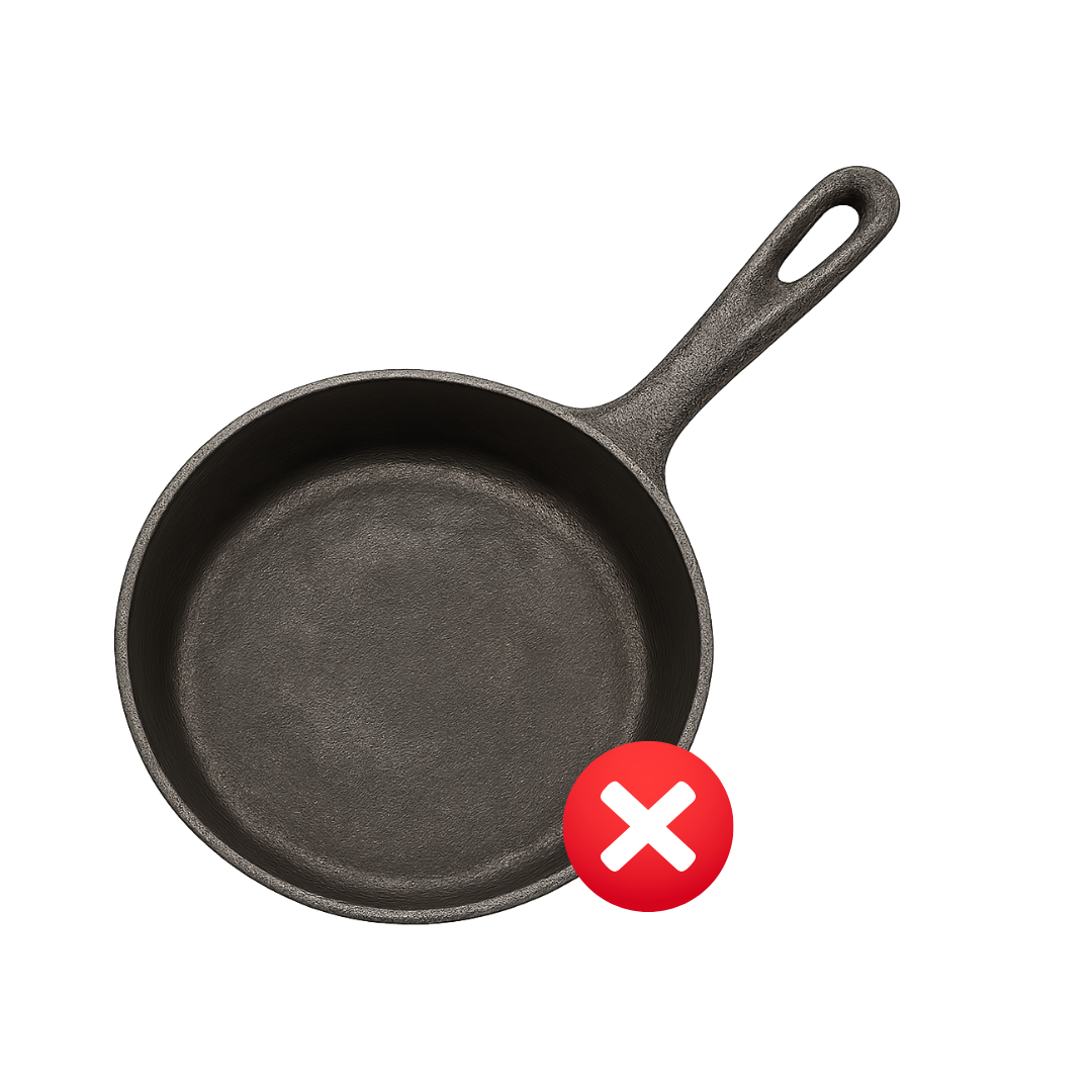 Die ungesündeste Wahl unter allen Pfannenoberflächen. Antihaft-Pfannen enthalten oft PFAS („Forever Chemicals“) die mit Gesundheitsproblemen wie Leberschäden oder Krebs in Verbindung stehen. Die Beschichtung nutzt sich ab und verträgt keine hohe Hitze – schädliche Stoffe können freigesetzt werden.